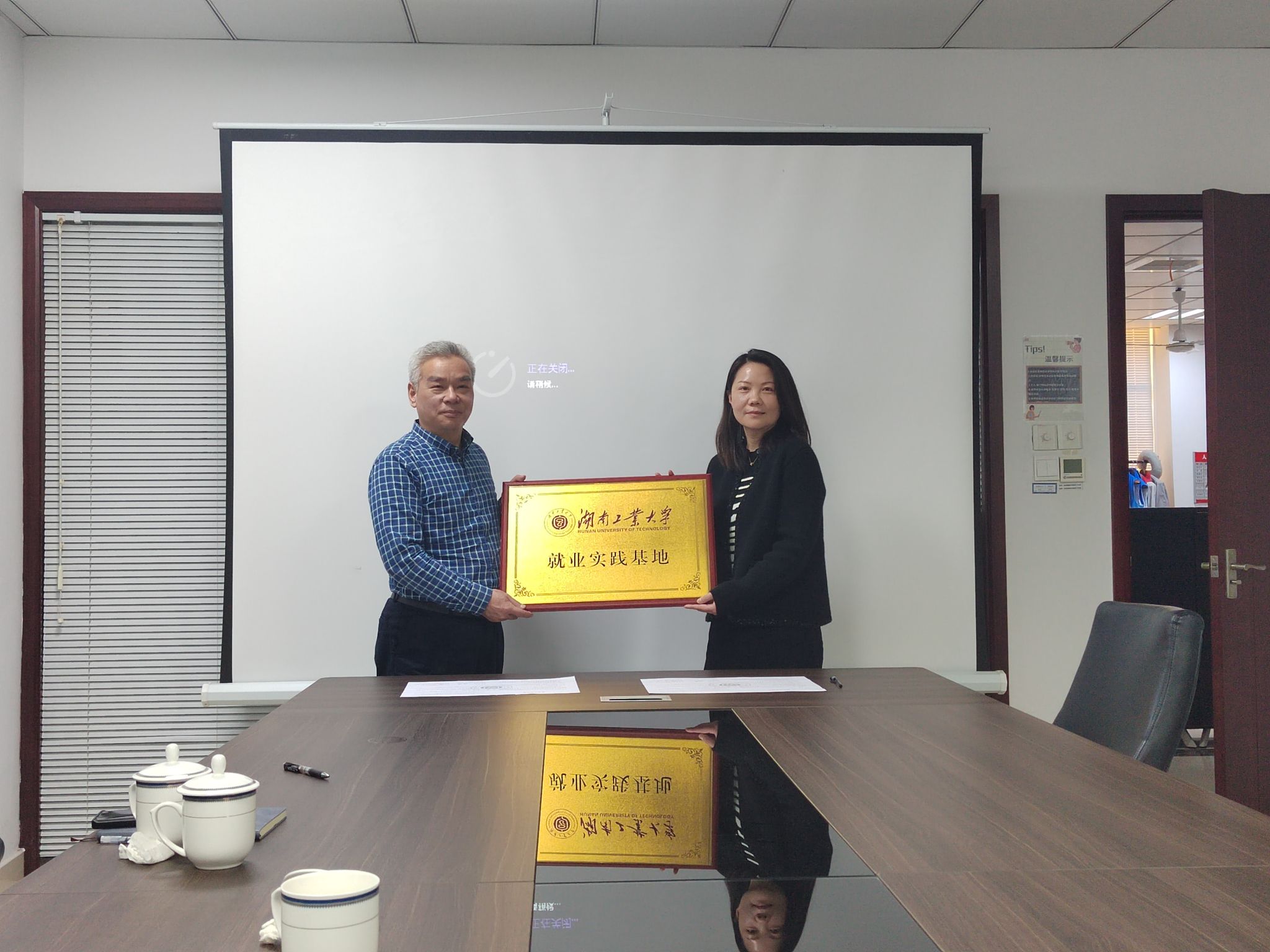 随后,校企双方举行签约仪式,李永清书记为企业进行了“就业实践基地”授牌。